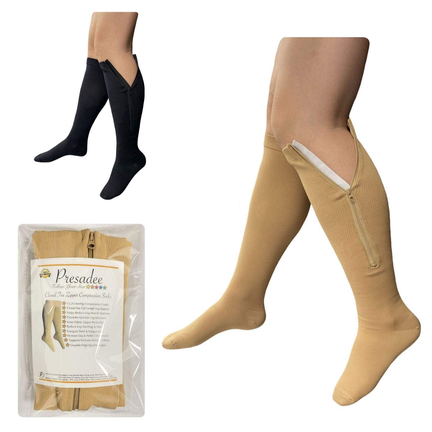 - Built-In Zipper With Inner Fabric - The Built-In Zipper Helps Put On Compression Socks Much Easier Than Traditional Socks. Our Inner Fabric Protects The Zipper From Rubbing Against Skin.