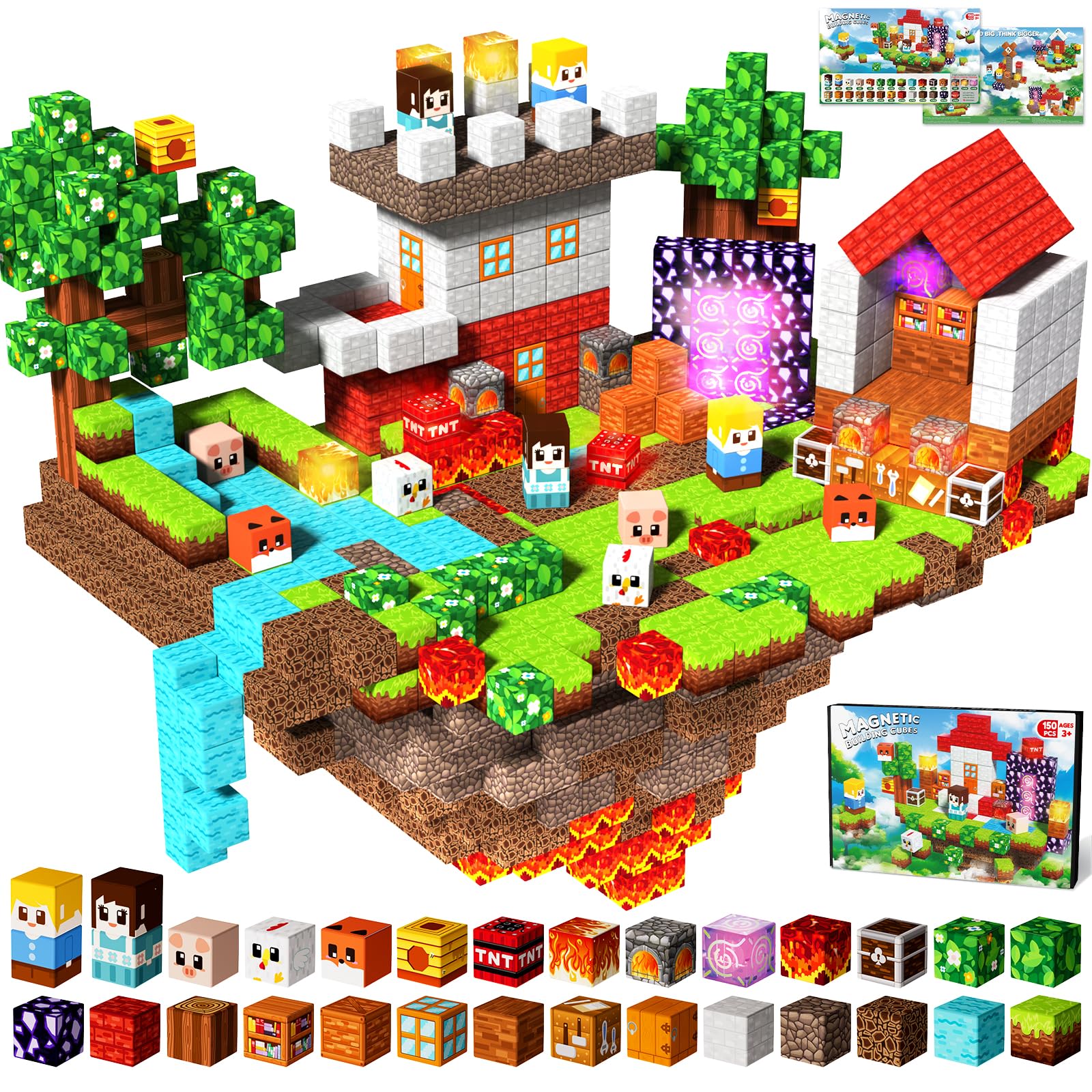 - 【Abundance of Gaming Elements】Let's embark on an adventure with magnetic building blocks! Spark the imagination of children with themes of lava, portal and forest. These magnetic blocks encourage open-ended play, allowing kids to construct, demolish, and rebuild as they please. Safe, durable, and designed for little hands, our magnetic cubes make learning fun, enhancing focus, patience, and motor skills—ideal toys for kids 3+ years old.