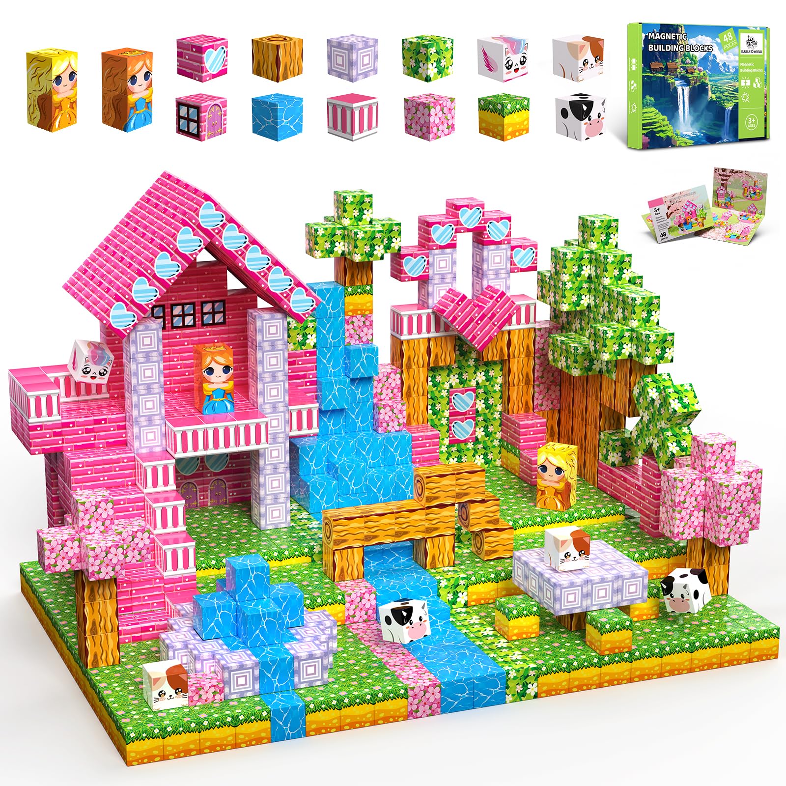 - 【Magnetic Building Blocks】Dive into a universe of magnetic tiles designed for budding builders. Including 300 magnetic cubes with 5 themes, 5 characters and 5 stories. Our Idea booklet is providing storyline and beautiful patterns, kids can either follow our patterns or create with their own imaginations!