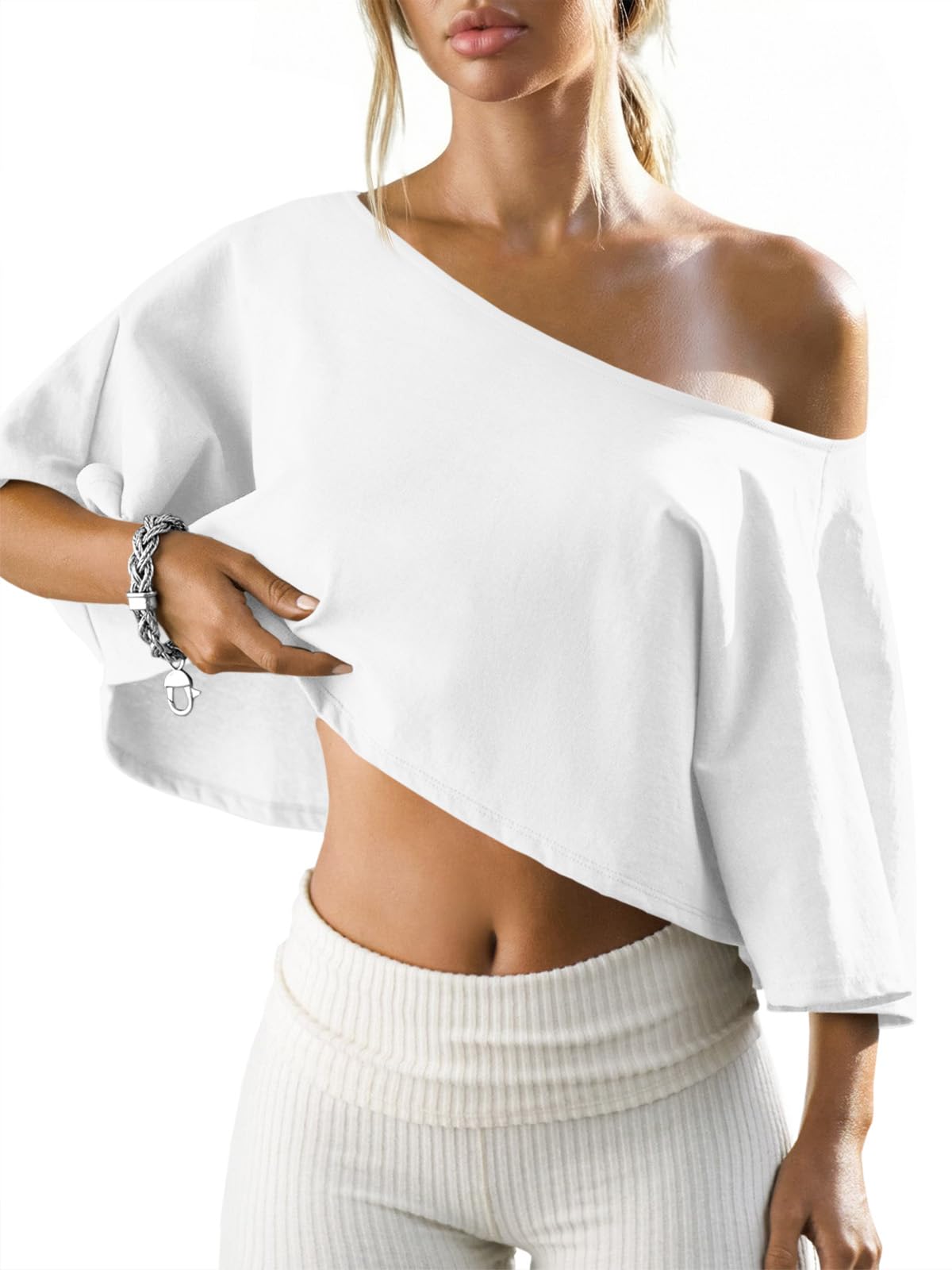 - Chic Designs: Embrace summer style with this off the shoulder top, elevated by a stunning asymmetrical neckline with a gold-tone metal accent. This versatile piece transitions effortlessly from casual daytime chic to evening glamour