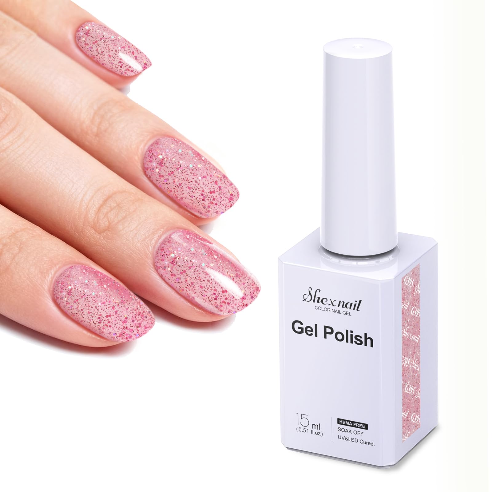 SHEXNAIL Gel Polish, Lámpara UV LED Hema Libre Gel Polish, 15ML Kit de manicura profesional y DIY para mujeres en casa (Glitter Verde)