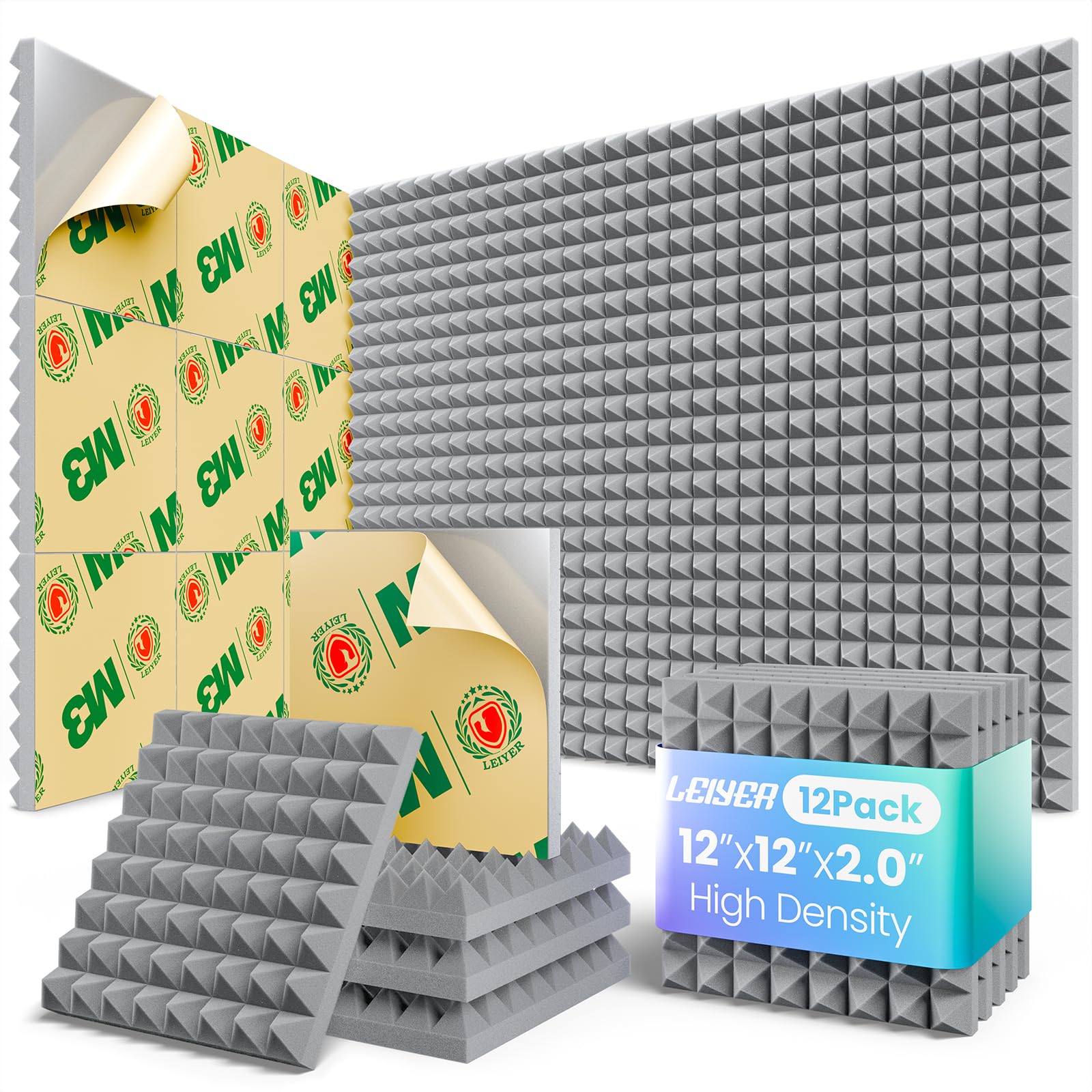 - Feature - Each package contains 36 packs of 12x12x2 inches acoustic foam panels self-adhesive, covering 36 square feet of the whole, while each individual panel covers 1 square foot. The high density of 25kg/m3 makes the sound foam panels dense enough to absorb more middle and high frequency sounds. Our acoustic foam wall panels is made of non-toxic polyurethane foam, which is completely harmless to the body.